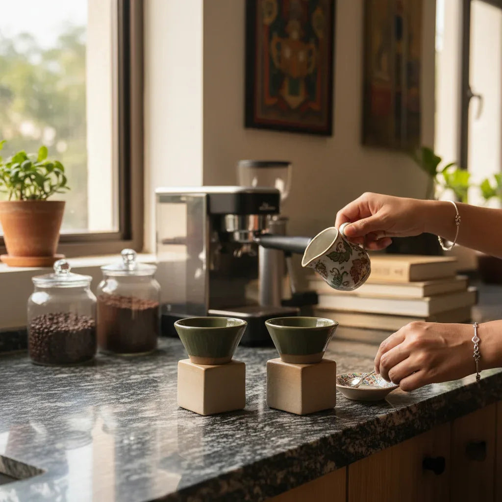 Hello! I’m Kanupriya Kajaria, the founder of Rustic Stone. After spending seven years in investment banking and private equity in Dubai, I returned to India, drawn back by the warmth of home and the beauty of our artisanal heritage.