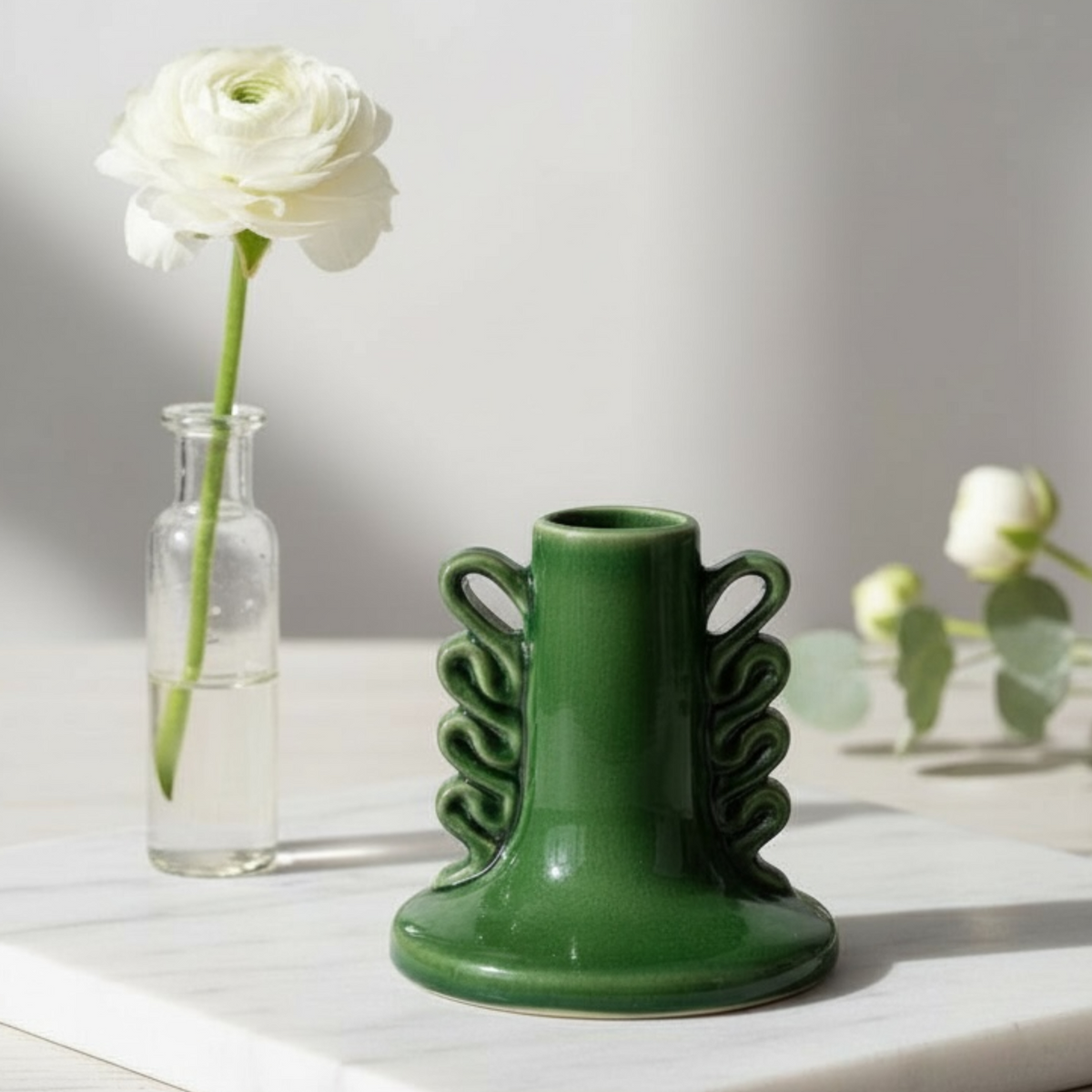 - Finish: Dark green glaze with a smooth glossy finish
