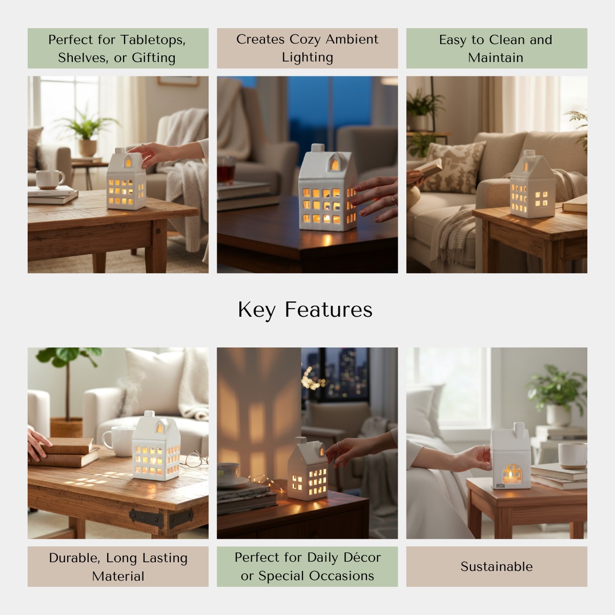 Bring cozy charm and artisan warmth to your living space with the Candlewick House. This handcrafted ceramic tealight holder is shaped like a miniature cottage, glazed in a warm, glowing white finish that radiates soft, flickering light. Perfect for tabletops, shelves, or as a thoughtful gift, it transforms any room into a magical retreat. Each piece is made from durable ceramic, ensuring lasting beauty and a comforting glow for years to come.