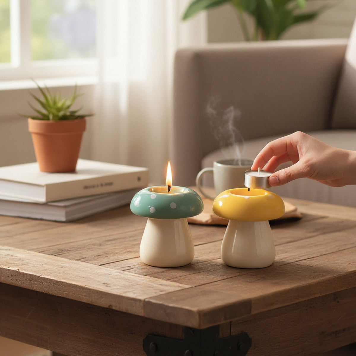 • Set of 2 ceramic candle holders in mushroom shapes