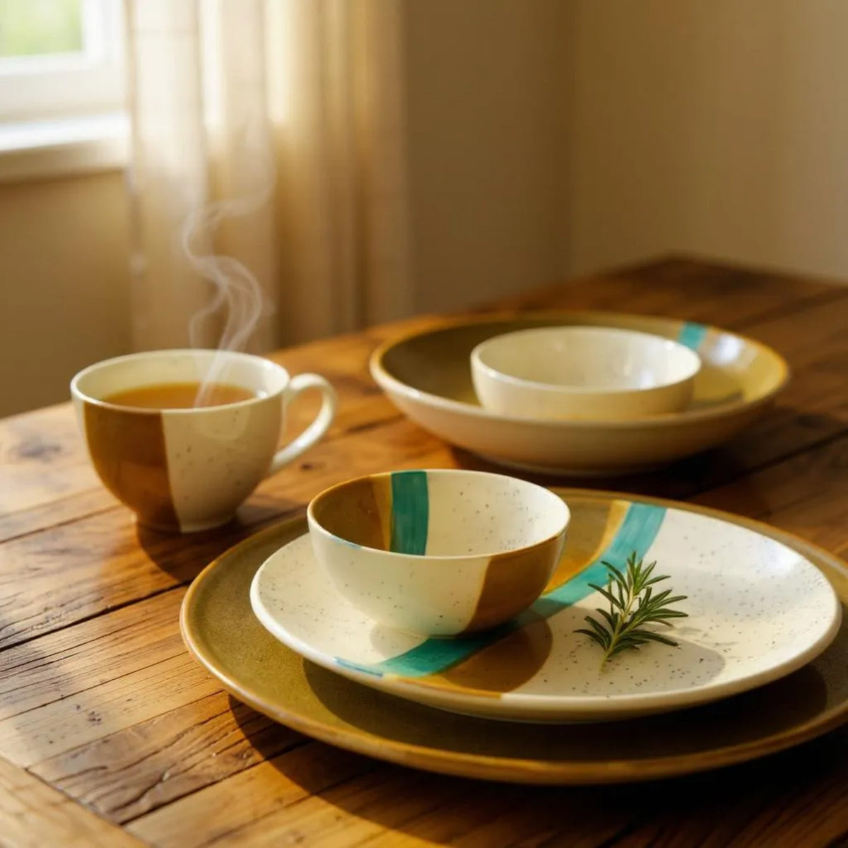 Bring the calming essence of the shoreline to your table with the Kiss of the Coast Dinner Set. Each piece in this beautifully coordinated set features handcrafted ceramic in gradient oceanic blues and sandy neutrals, evoking the tranquil meeting of sea and land. Designed for both everyday meals and special gatherings, this set offers an artful yet practical way to elevate every dining occasion.