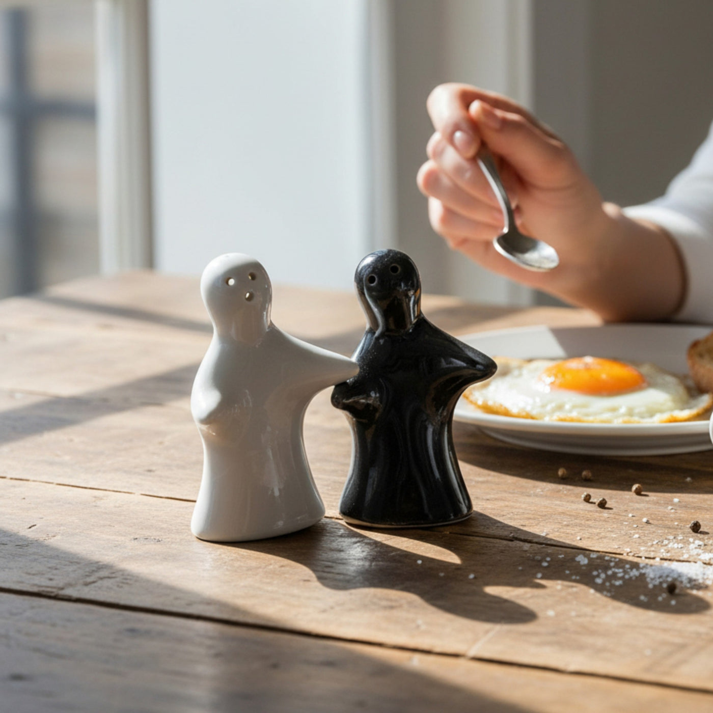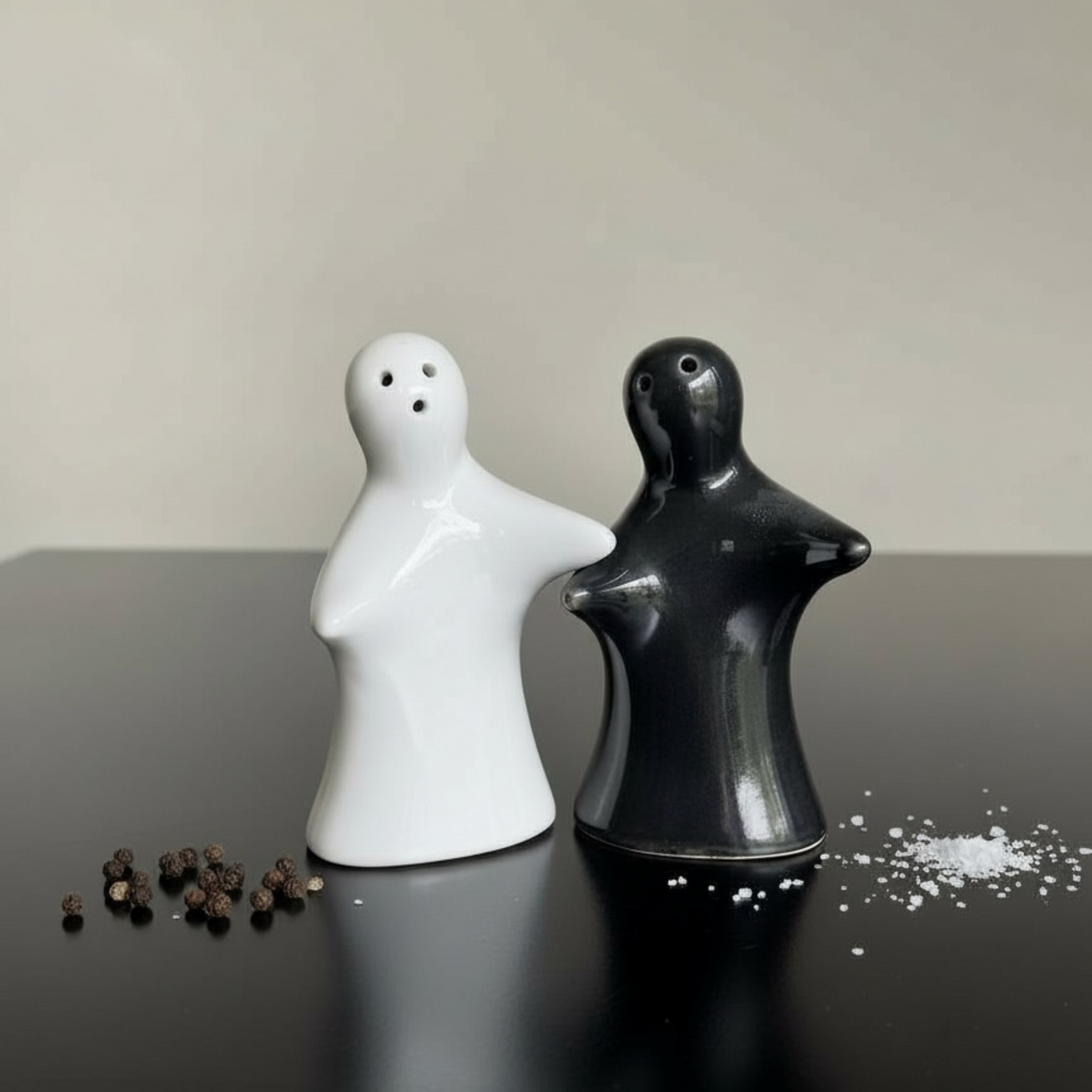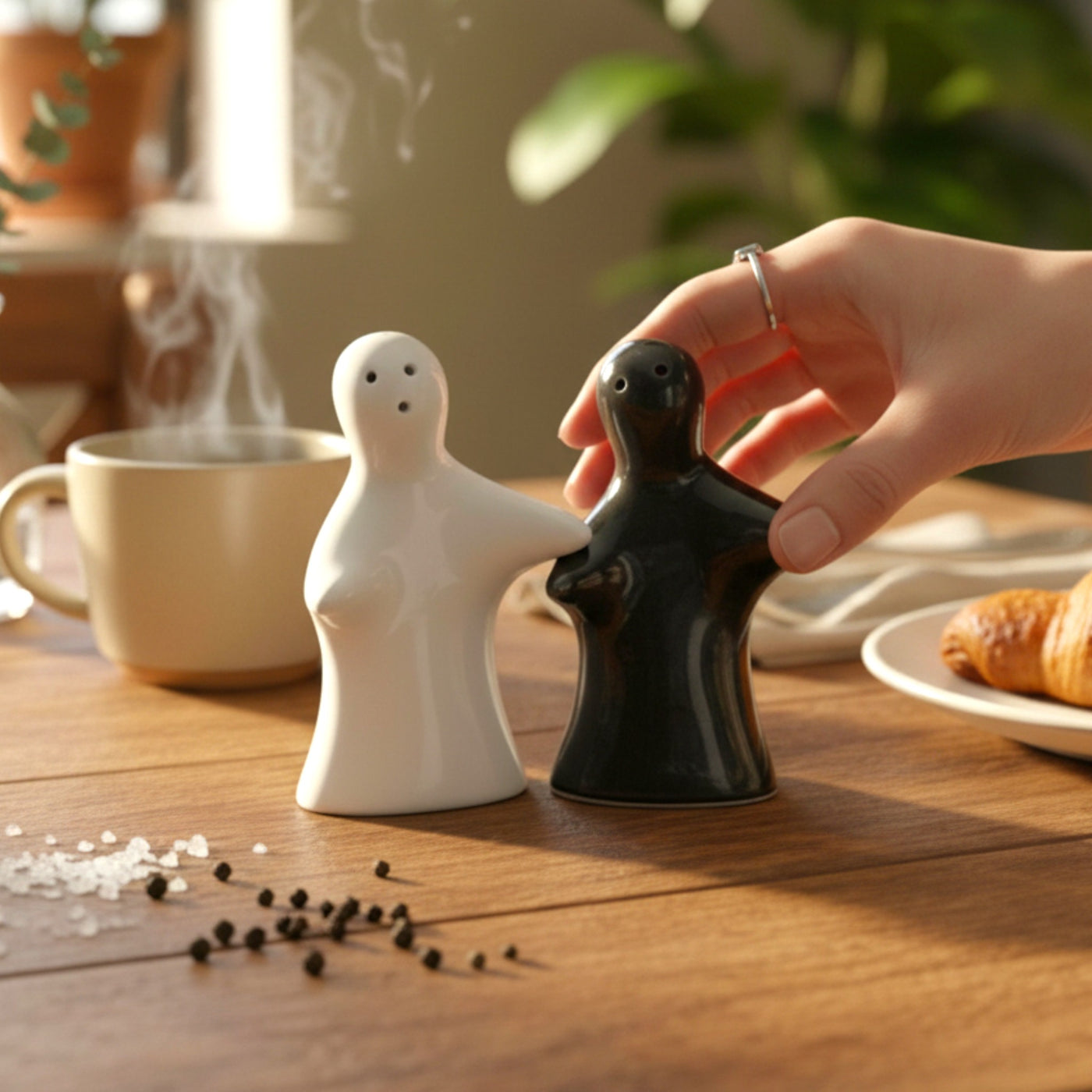 Style Tip: Place the Yin Yang Salt & Pepper Set at the center of your table on a small wooden or marble coaster, then layer around it with simple white plates and a dark linen runner so the monochrome “hugging” silhouettes become the charming focal point of your tablescape.