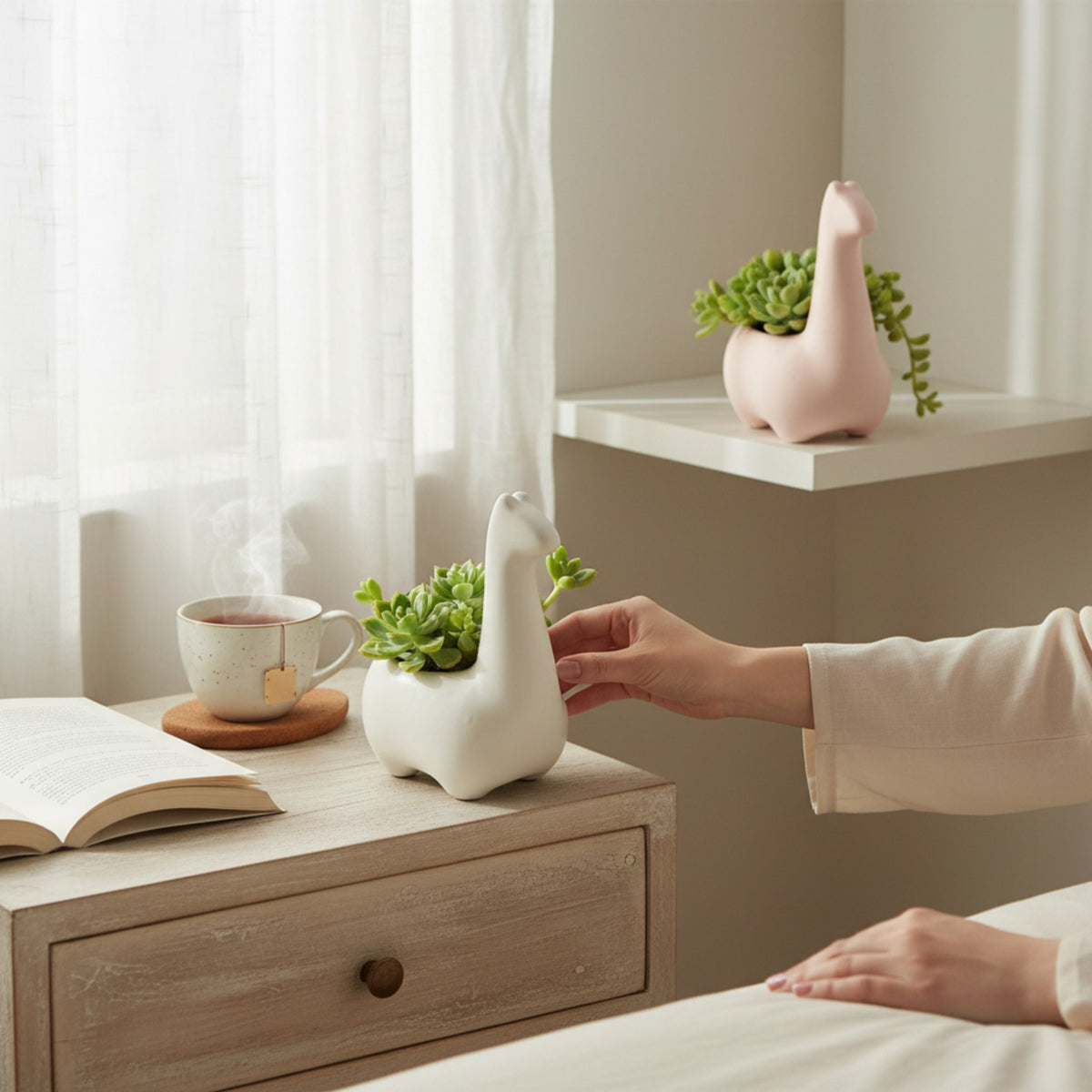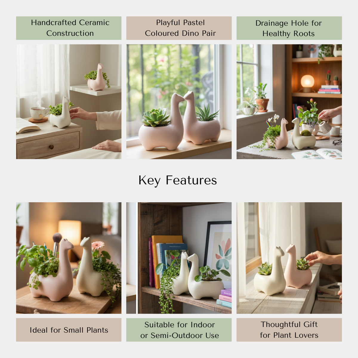 Whether you're looking to brighten up your workspace or searching for the perfect gift for a plant lover, the Dino Cuddle Planters offer a unique blend of cute and contemporary that fits seamlessly into any decor style.