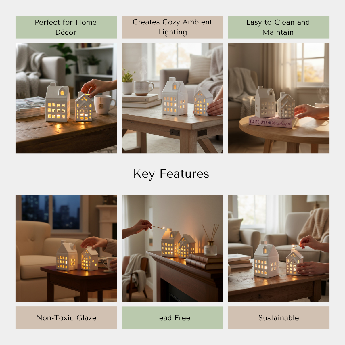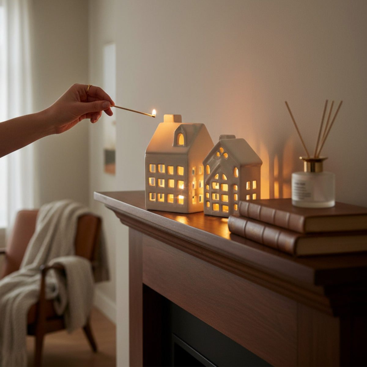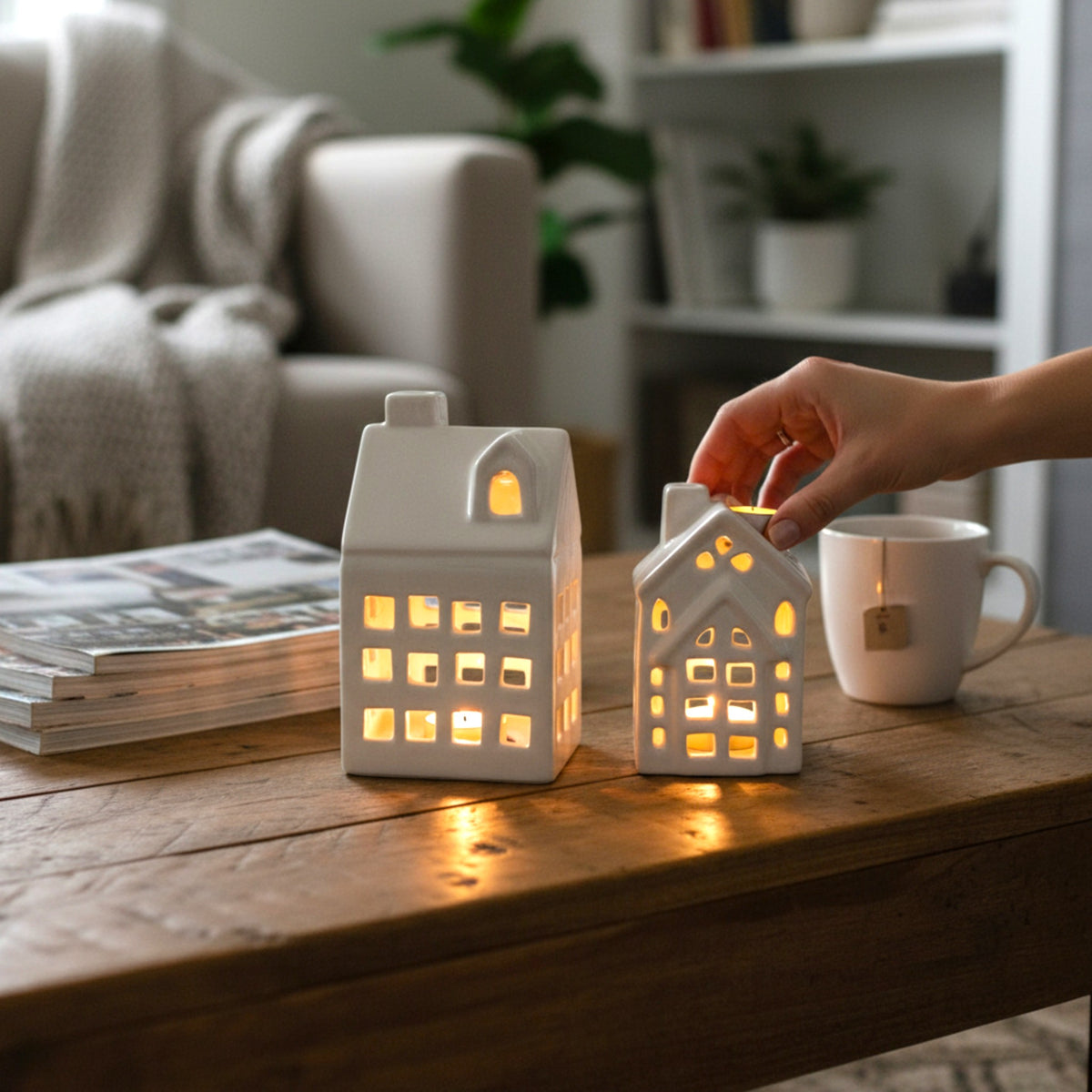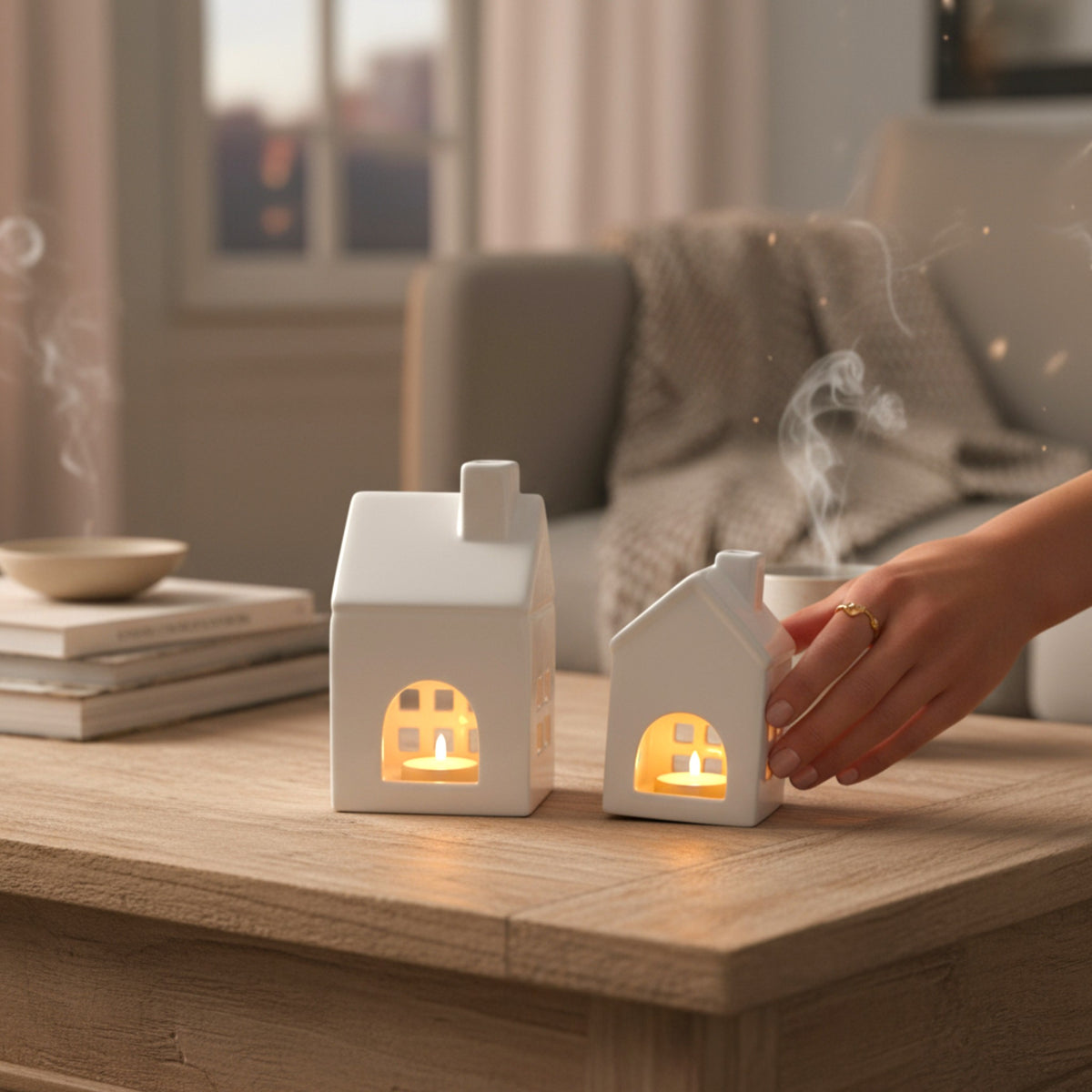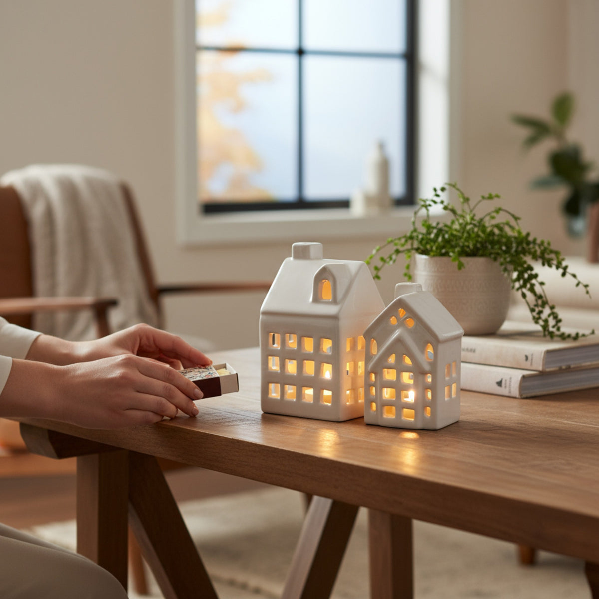 Meet the Candlewick Cabins — where candles come home to glow and your décor gets a delightful upgrade. Welcome this whimsical set of two ceramic cottage tealight holders into your home, and watch cozy corners transform into tiny villages of light. Each hand-finished house radiates warmth through its little windows, creating night-time magic worthy of bedtime stories.