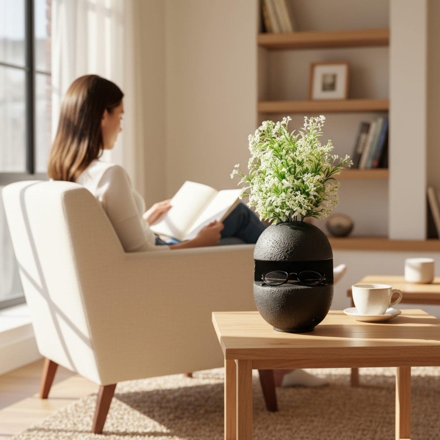 Discover artisanal elegance with the Inkstone Atelier Vase, crafted from premium ceramic and finished with a rich matte black textured glaze inspired by traditional East Asian inkstones. Its unique sculptural silhouette features a practical niche designed for your specs, phone, or book, blending refined artistry with modern functionality. Perfect for minimalist, contemporary, or art-inspired spaces, this vase elevates any room with understated luxury and everyday practicality.