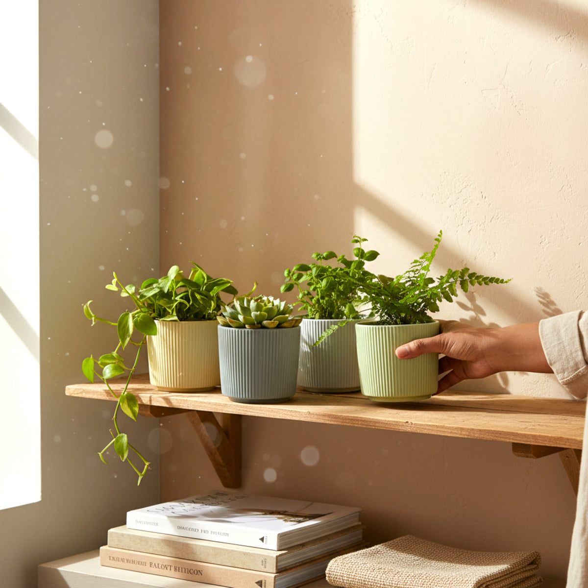 Bring balance and beauty to your space with the Harmony Planters — a thoughtfully designed quartet that celebrates subtle color and handcrafted detail. In soft tones of grey, green, yellow, and white, these planters create a serene palette perfect for modern homes that embrace nature indoors.