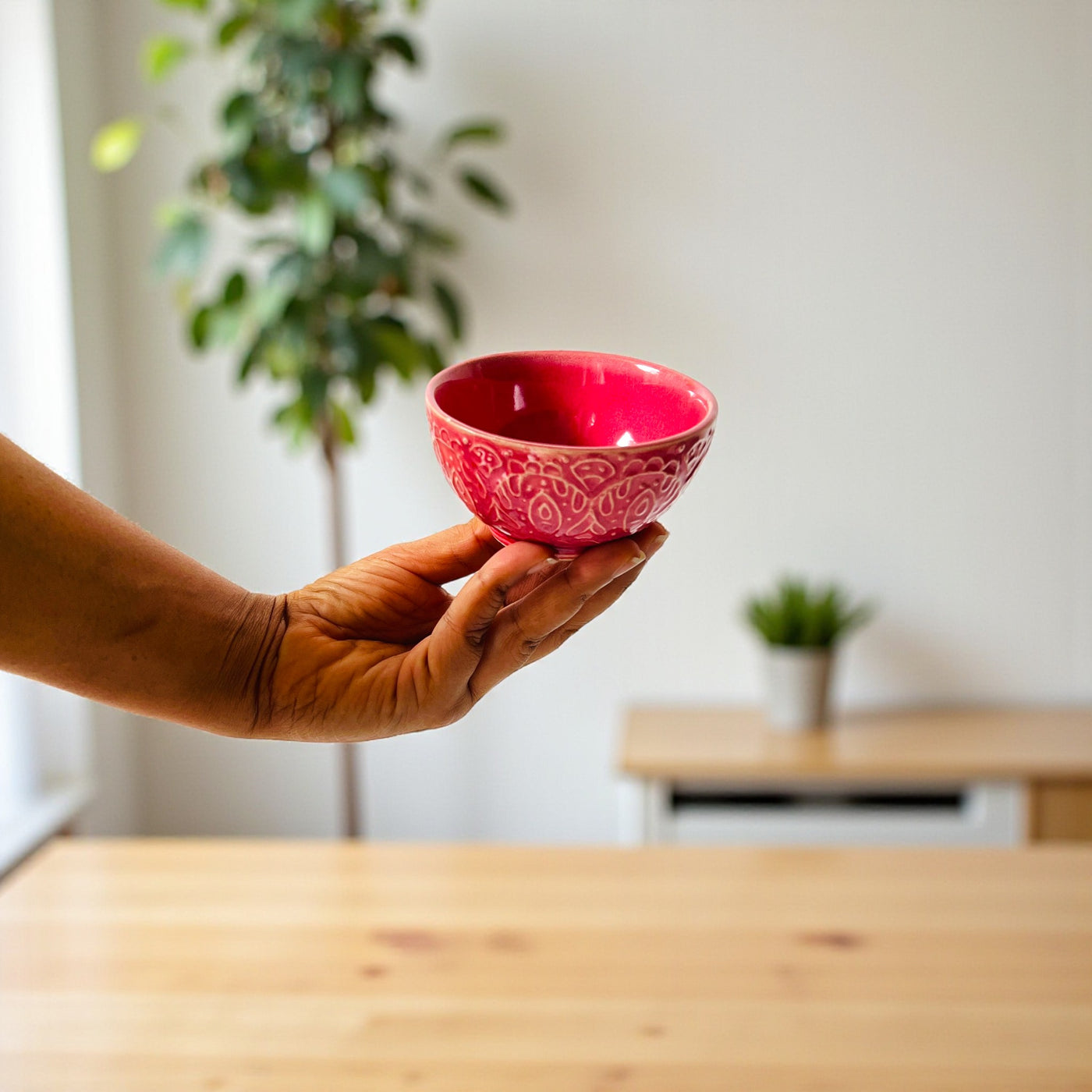 Brighten up everyday snacking with the Fuchsia Flair Snack Bowl set from Rustic Stone. Meticulously handcrafted these pink bowls feature delicate etched patterns that add a playful, artisanal touch to every table. Each compact bowl is sized perfectly for fresh fruit, nuts, candies, or dips making casual get-togethers and morning rituals feel thoughtfully styled.