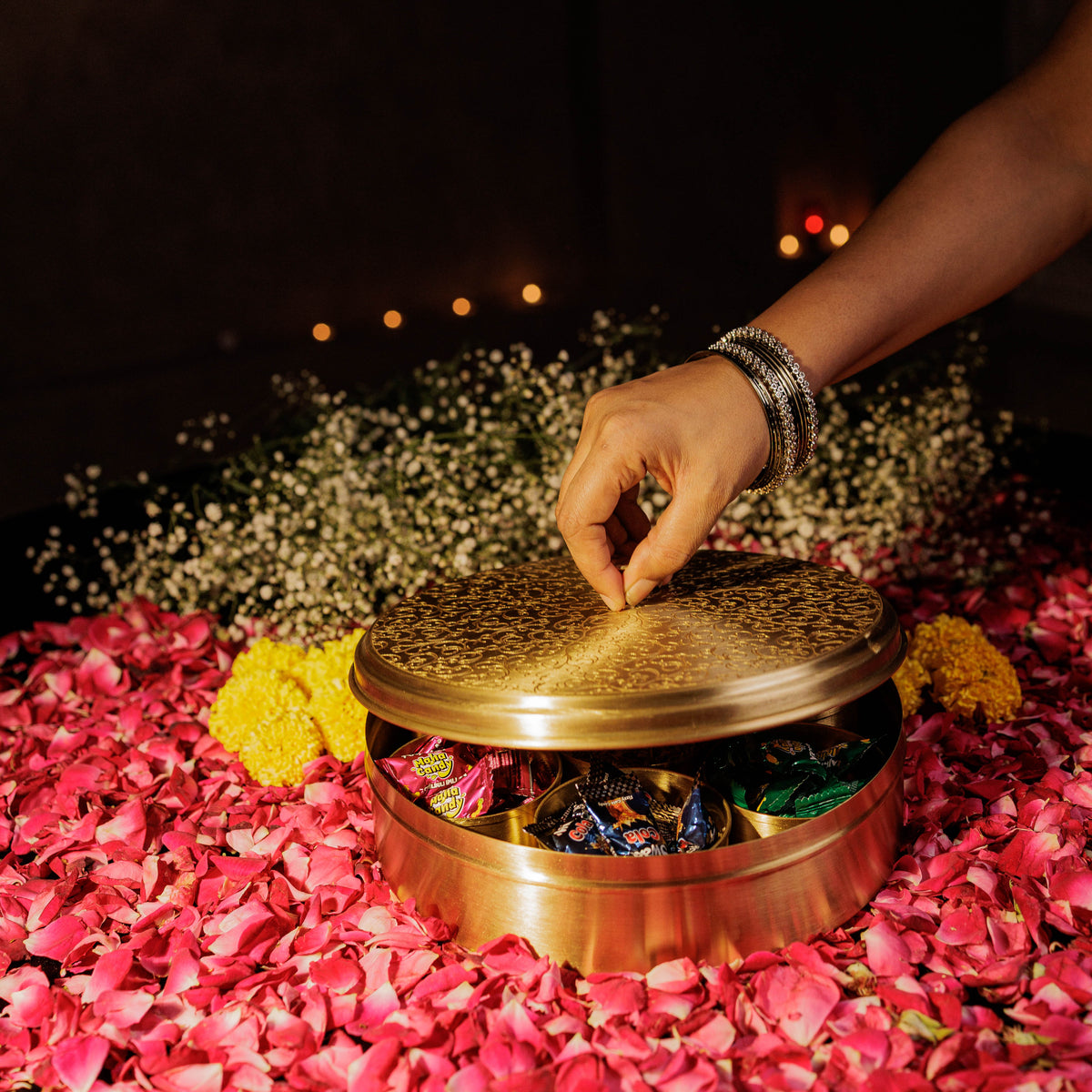 Bring timeless elegance and organization to your kitchen with the Heritage Brass Masala Orb. Expertly handcrafted from pure brass, this sophisticated airtight spice box features multiple compartments to keep your favorite spices fresh, aromatic, and within easy reach. While perfect for everyday spices, please avoid storing sour or acidic spices like coriander (dhaniya), asafoetida (hing), or fenugreek (methi), as they may react with brass. The vault is versatile - it can also be used to serve assorted candies, mouth fresheners, or as a stylish storage box for your jewelry.