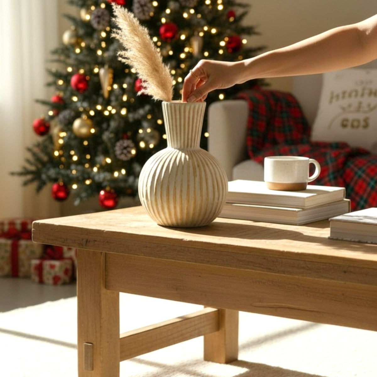 Style tip: Pair the Sandbar Willow Vase with natural dried stems or eucalyptus on a wooden coffee table for an earthy, textured vignette, or combine with other neutral ceramics for a layered, sculptural look in entryways and open shelves.