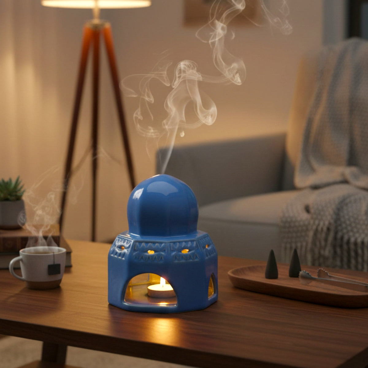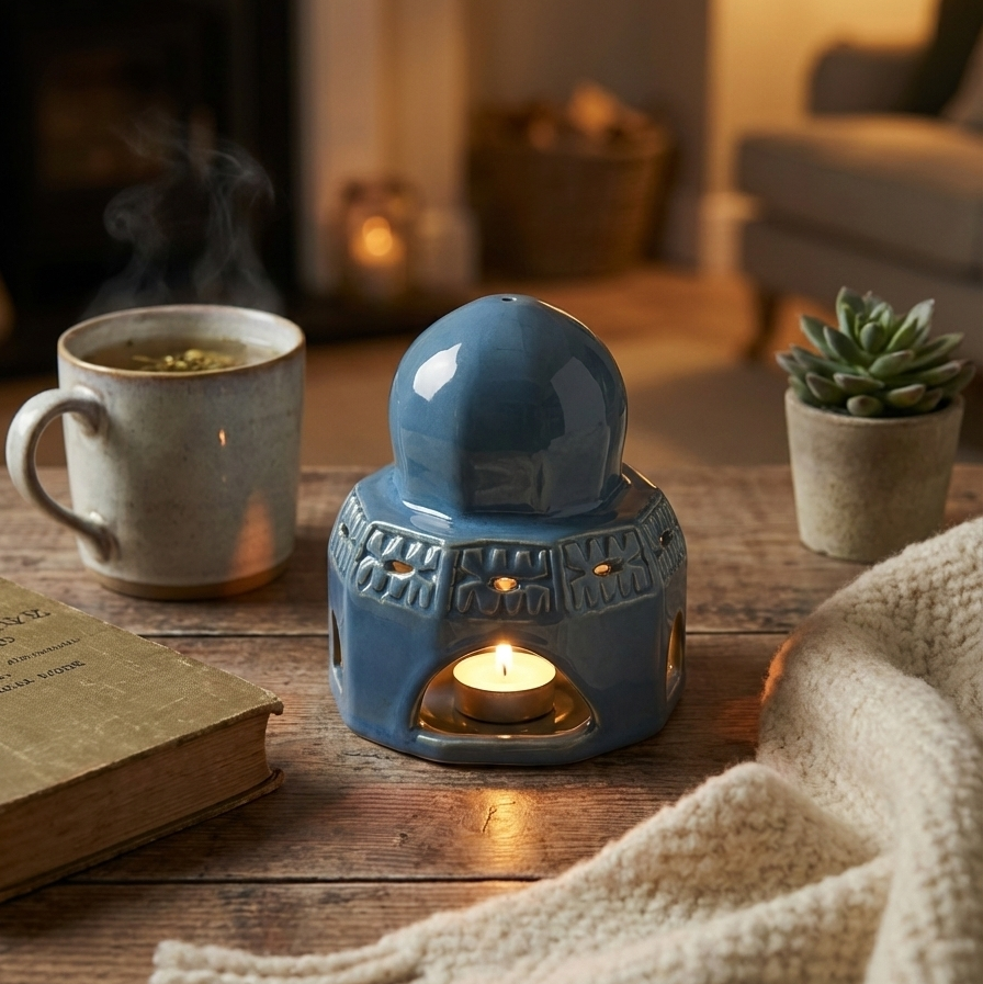 Create your own evening ritual with the Twilight Dome, a sculpted ceramic tealight holder designed to bathe your space in soft, ambient light. The rounded dome silhouette and carved cut-outs allow candlelight to gently spill through, creating dancing patterns on your table and walls for a snug, lived-in vibe. Perfect for winding down after a long day, styling coffee tables, bedside corners, or festive tablescapes, this piece doubles as functional lighting and a statement decor accent.