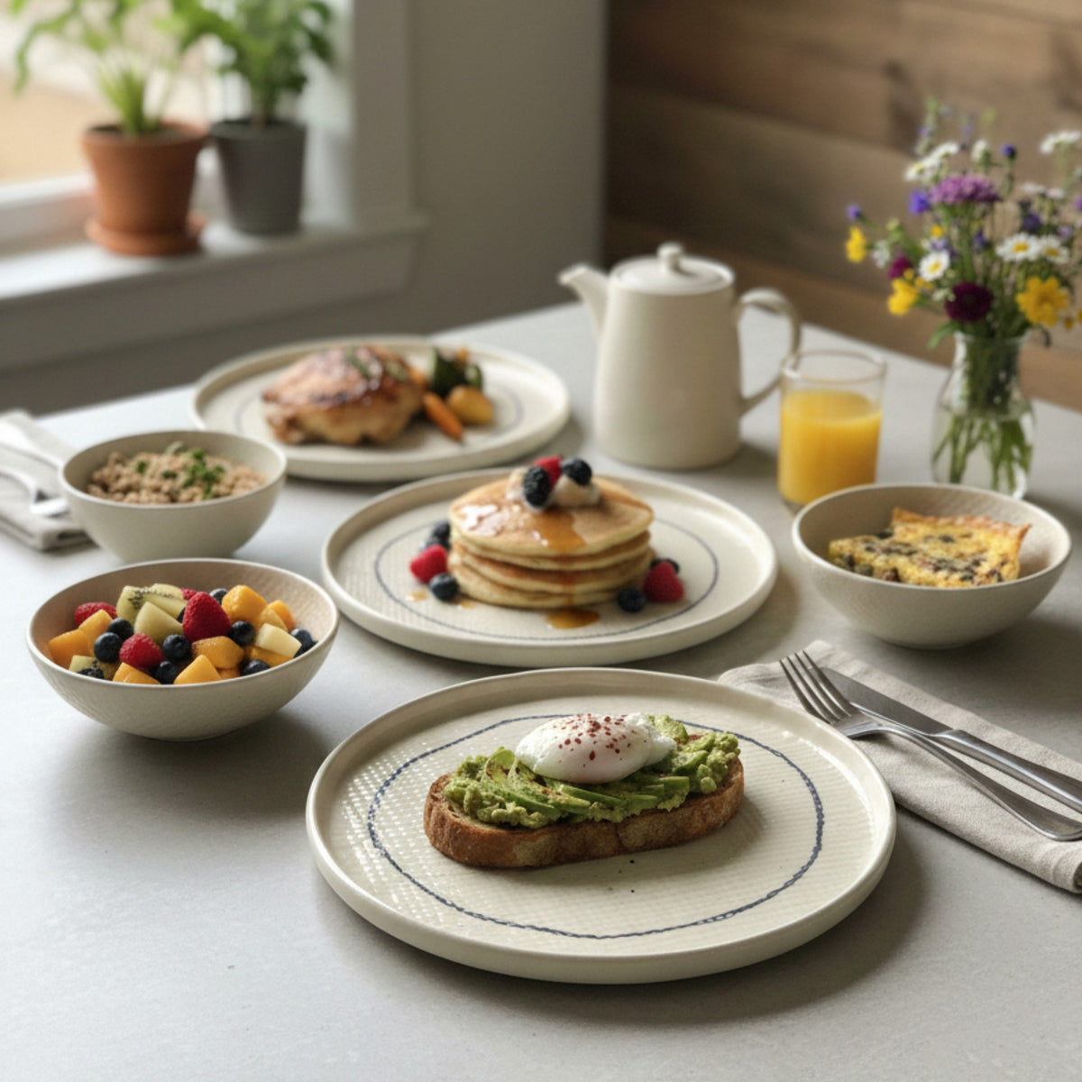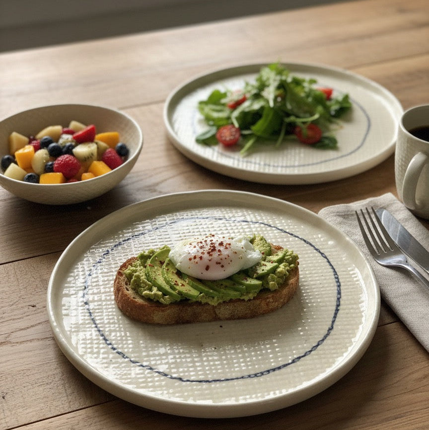 Style tip: Layer the Weavers Ring plate over a natural linen placemat and pair with brushed steel cutlery for an effortless café-style setting at home. Add a small bowl in similar tones for fruit or sides to create a relaxed, curated brunch look.